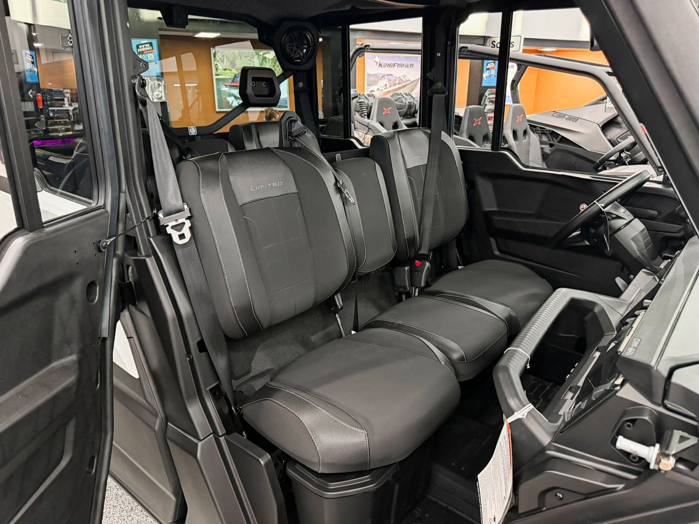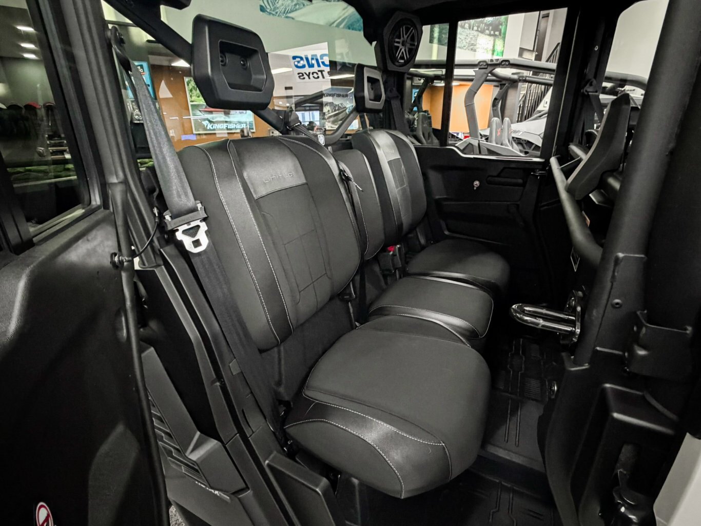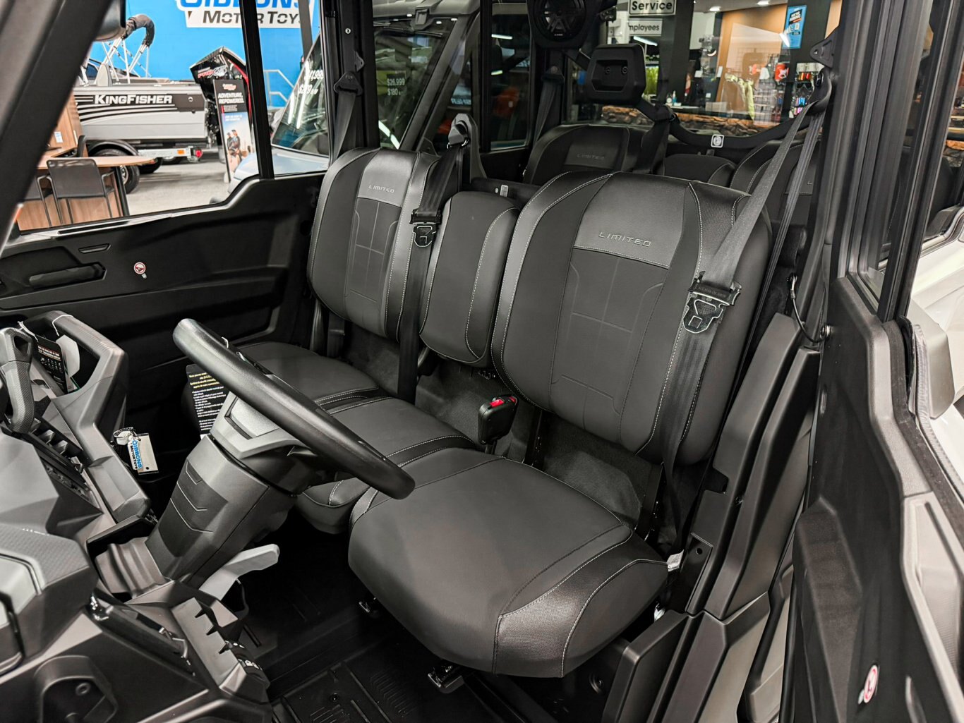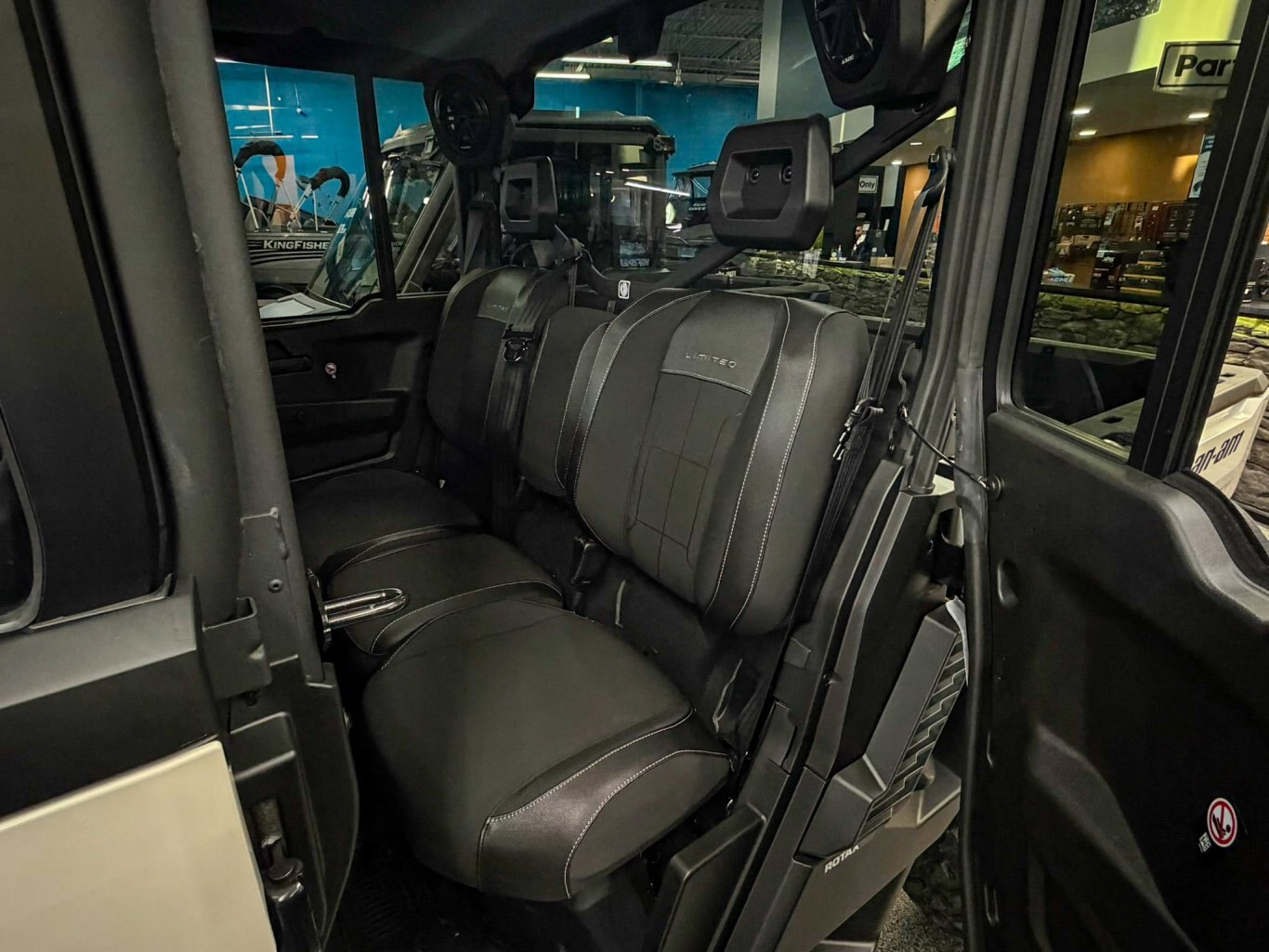 Full glass tilt up windshield with wiper kit, Full color match front doors with locks and electric opening tinted windows, Rear color match doors with roll down window, Rear tinted glass window, Panoramic mirror, Full heavy-duty HMW plastic skid plate, Full hard roof with liner and dome light, Large heavy-duty front bumper, Mudguards, Floor mats
